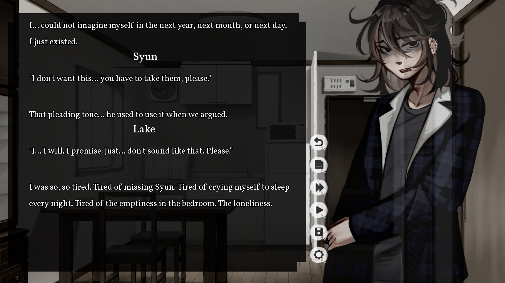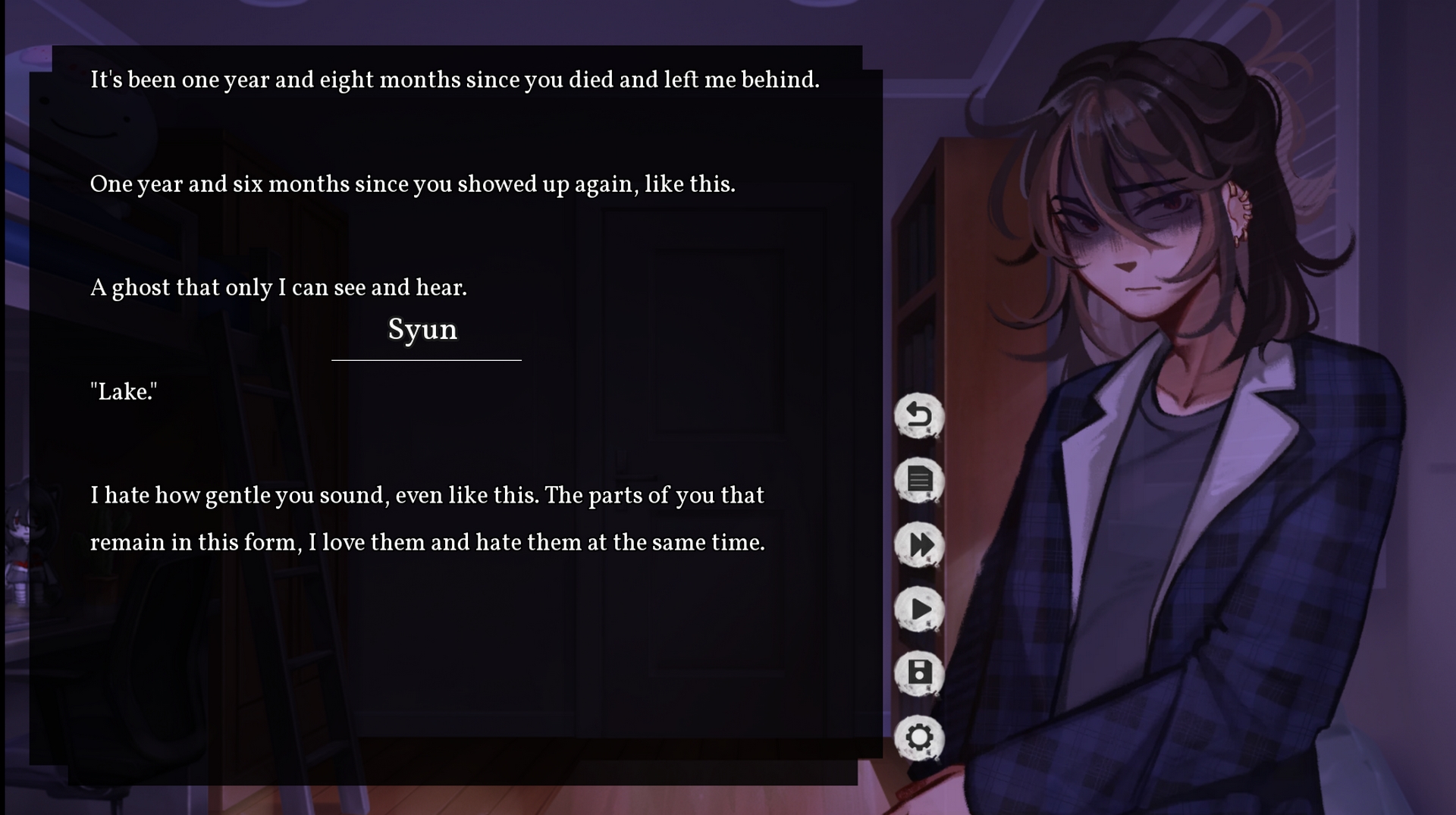 One Last Goodbye is a queer visual novel with psychological horror elements about grief, love, and the silent violence of learning to live again.